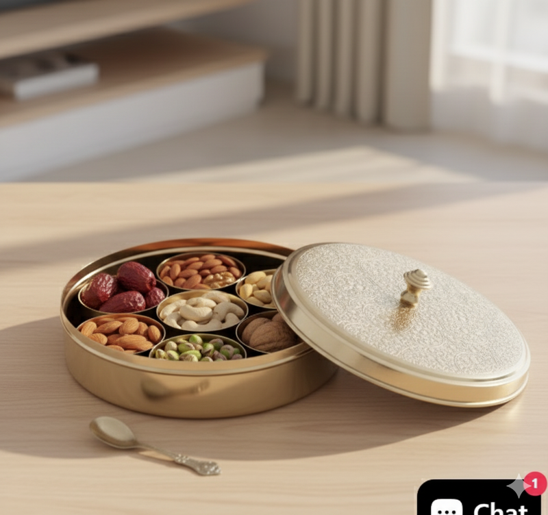 The masala box (masala dani) has been a symbol of culinary heritage in Indian kitchens since medieval times—a centerpiece for flavor, ritual, and health. Passed down through generations, these traditional brass containers once graced royal banquets and humble homes alike, meticulously preserving the spices’ potency while adding a gleaming touch of tradition to every meal.