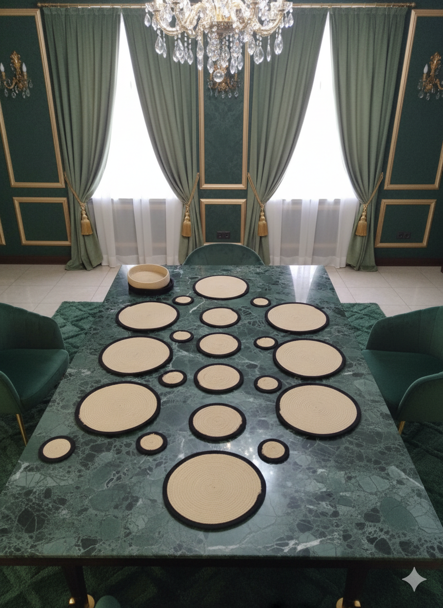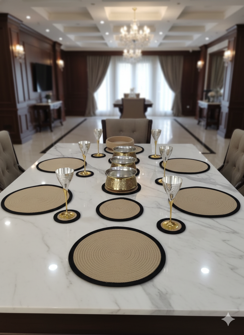 Your dining table sets the tone of your home. When the mats don’t match, or the coasters wander around, the whole space feels a little off.