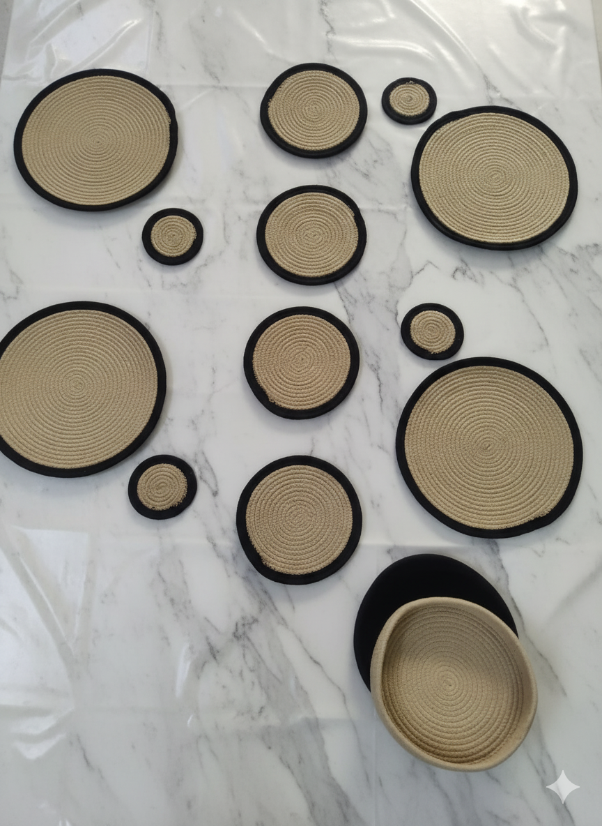 Absolutely. While designed for the dining table, the Hot Pads are robust enough to be used as stylish trivets for indoor plants or decorative items. The Coasters are perfect for side tables, protecting surfaces throughout your living space, making the set a comprehensive home solution.